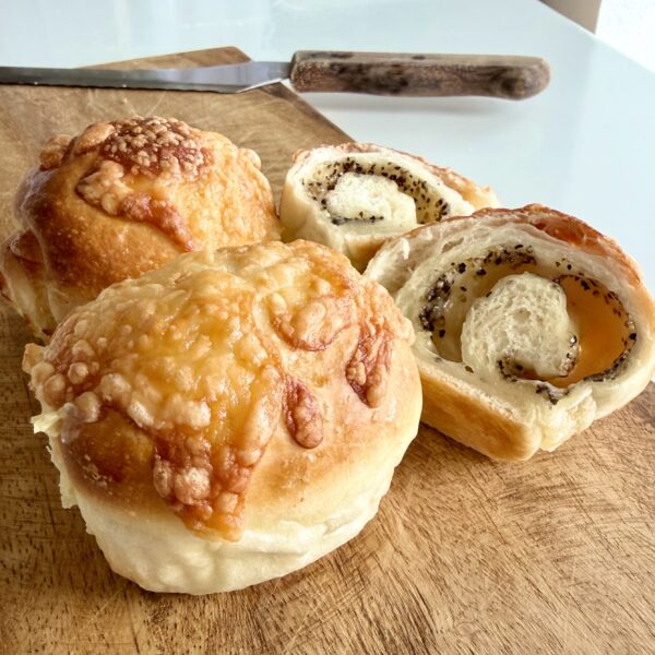 ふわふわ生地の中に、ブラックペッパーとチーズを巻き込んで、ちょっぴりスパイスフルなお総菜パン。